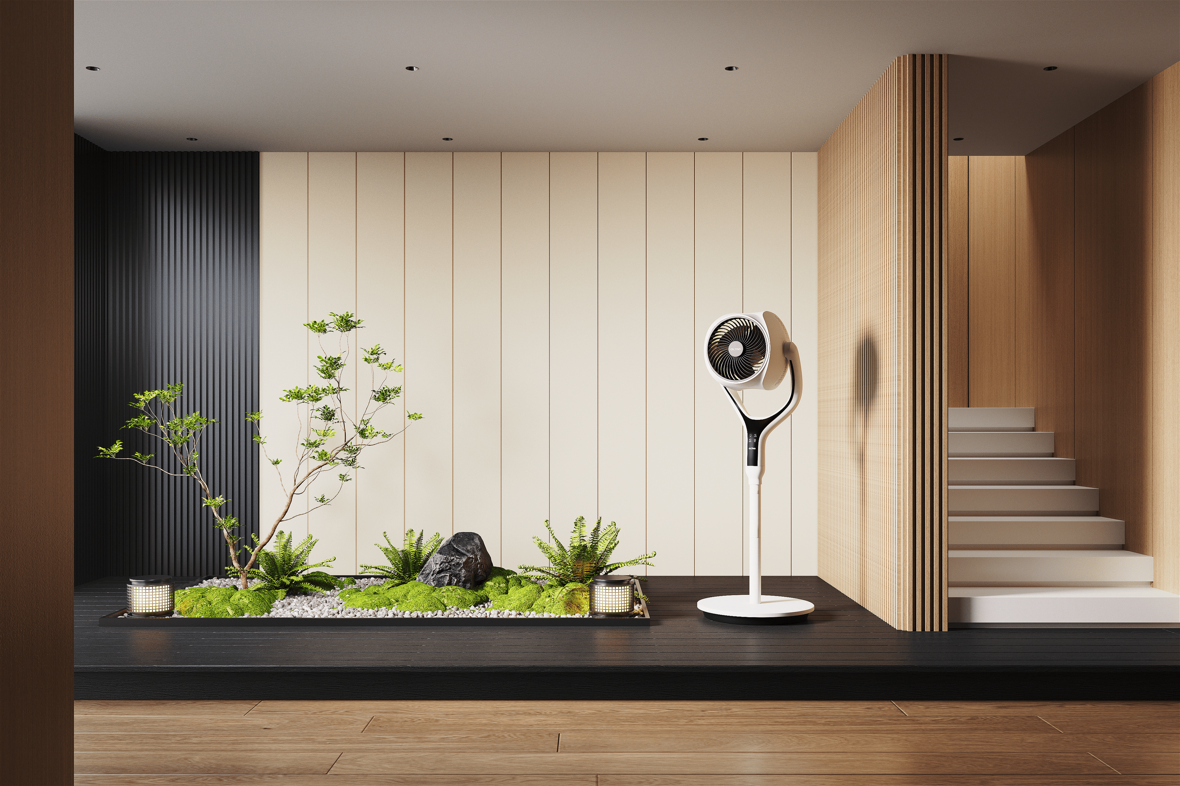 A super-shiny curved LED ring envelopes a concealed fan, creating a sculptural focal point perfect for dining tables. The wrap-around illumination offers glare-free ambience, while the hidden aerodynamics deliver gentle, even airflow without disturbing your décor.
