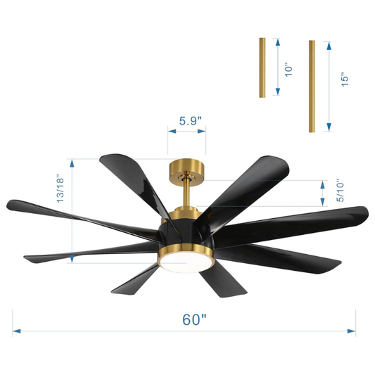 Roger 60-Inch Ceiling Fan with 8 Durable ABS Blades and Dimmable LED