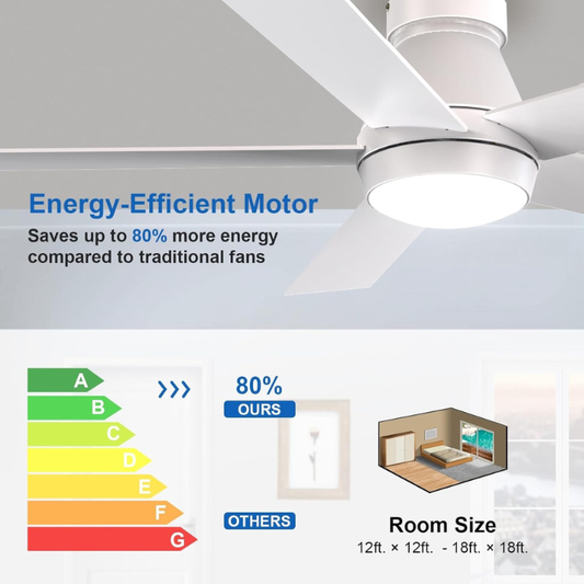 Akasa 52 Inches Flush Mount Ceiling Fan | Real Wood 3-Blade Low-Profile Design